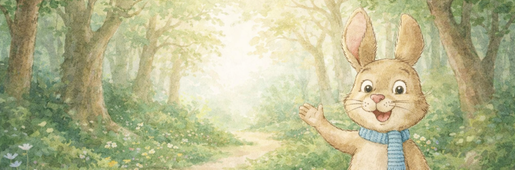 Fabelskovens små glimt er malet i hånden med akvarel, og rummer hver deres stille øjeblik fra Fabelskoven. Billederne er skabt med plads til at kigge, undre sig og tale sammen. De kan bruges som en blid samtalestarter: